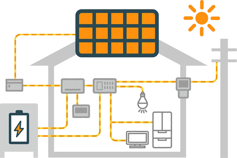 蓄電池を合わせれば、太陽光パネルで発電した電気を蓄電池に貯めることができます。