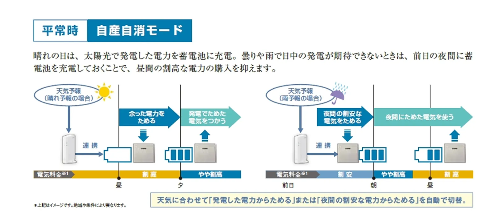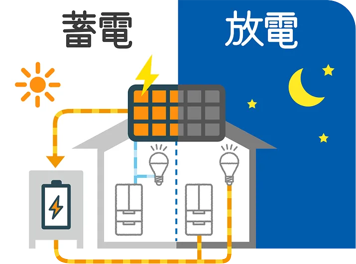 蓄電池と太陽光発電システムと組み合わせると、自家発電した電気が有効に使えます。